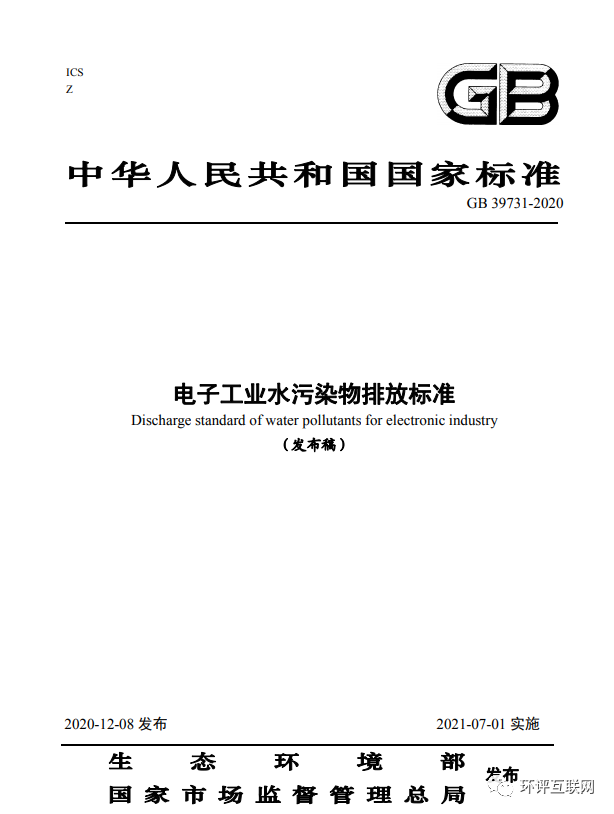 一、《電子工業(yè)水污染物排放標(biāo)準(zhǔn)》(GB 39731-2020)