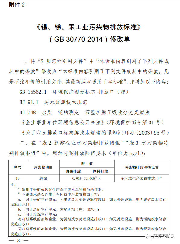 2.《錫、銻、汞工業(yè)污染物排放標(biāo)準(zhǔn)》(GB 30770-2014)修改單