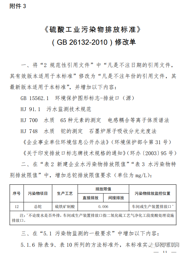 3.《硫酸工業(yè)污染物排放標(biāo)準(zhǔn)》(GB 26132-2010)修改單