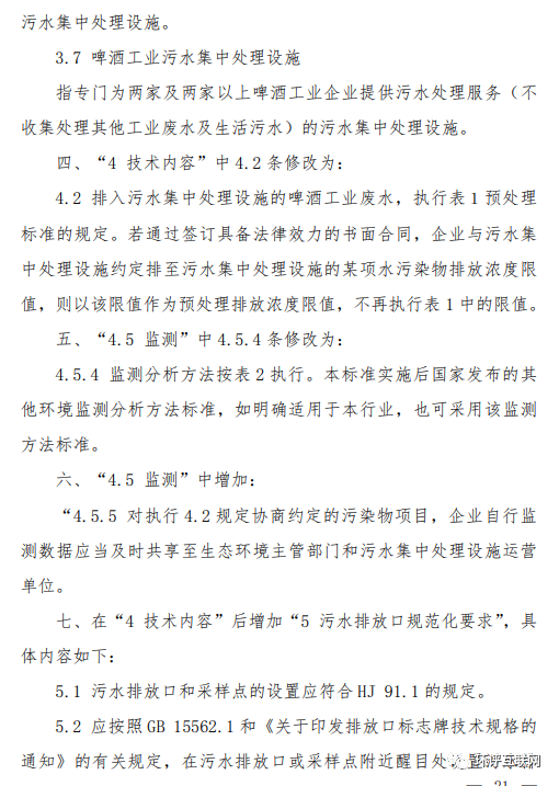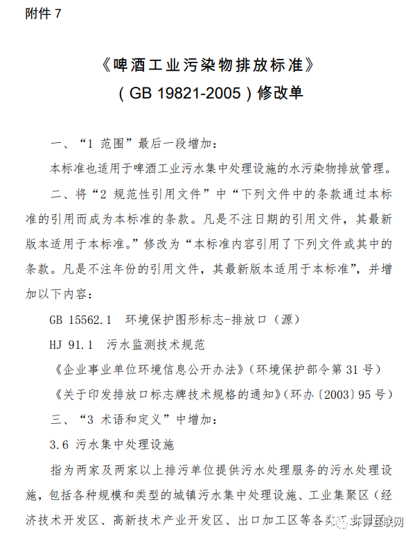 八、《啤酒工業(yè)污染物排放標(biāo)準(zhǔn)》(GB 19821-2005)修改單