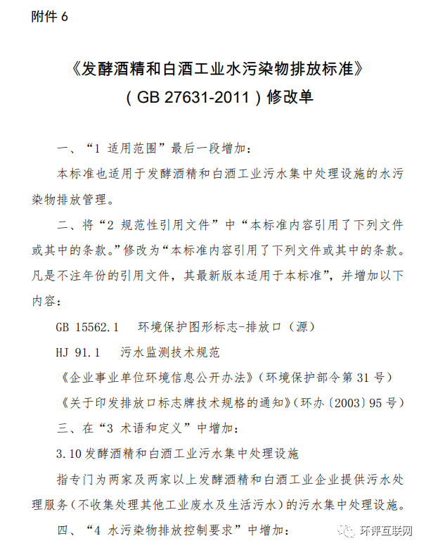 6.《發(fā)酵酒精和白酒工業(yè)水污染物排放標(biāo)準(zhǔn)》(GB 27631-2011)修改單