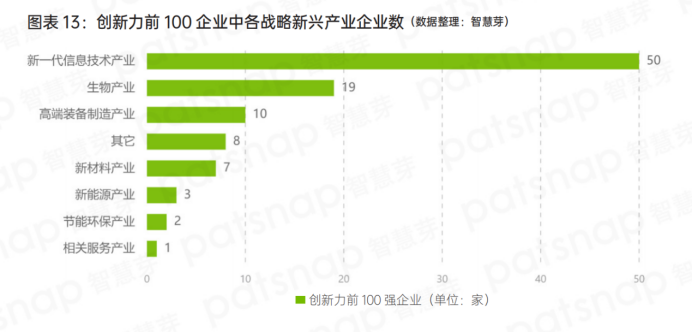 新一代信息技術產業排第一,占到半壁江山,有50家企業上榜;排名第二的行業是生物產業,19家企業上榜;排名第三的行業是高端裝備制造行業,10家企業上榜。
