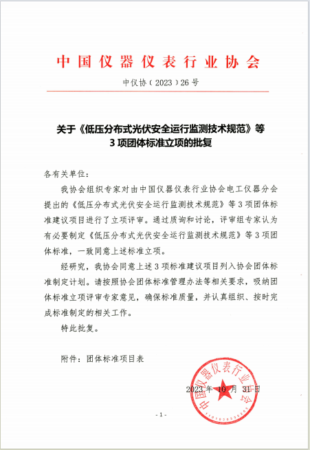關于《低壓分布式光伏安全運行監測技術規范》等3項團體標準立項的通知