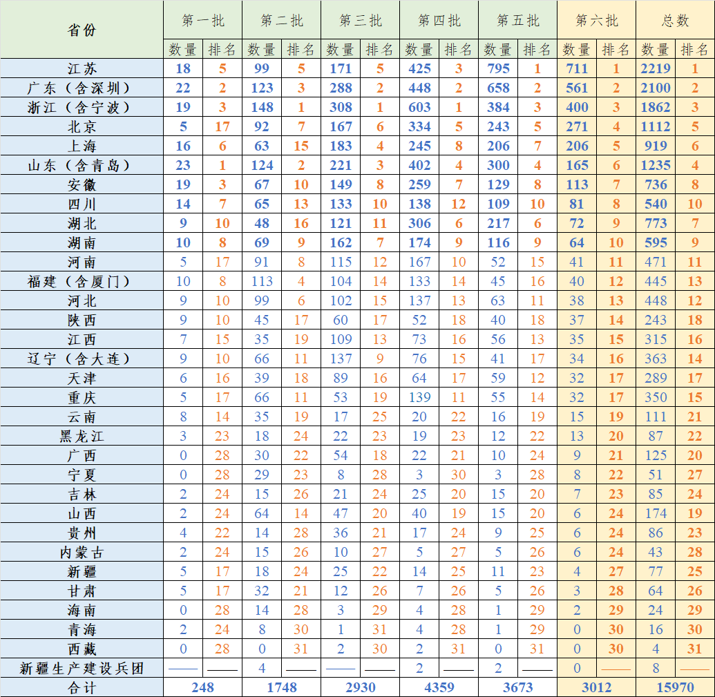公開數據顯示,第六批專精特新小巨人企業為3012家,第三批專精特新小巨人通過復審企業數為2430家。據統計,前六批累計公示企業數為15970家,去除前三批復審未通過的企業后,現有小巨人數量仍超1.46萬家。