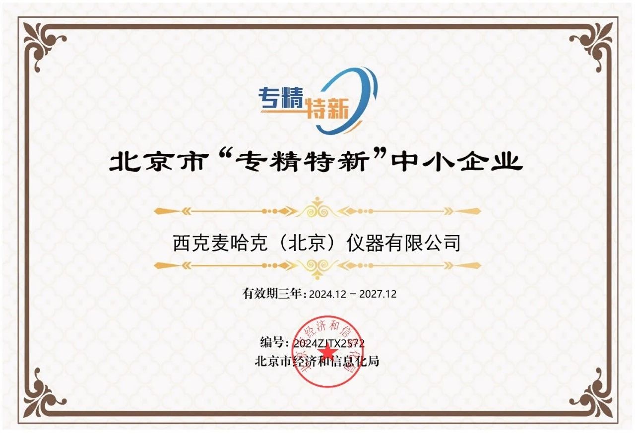 西克麥哈克榮獲北京市2024年度“專精特新”中小企業稱號