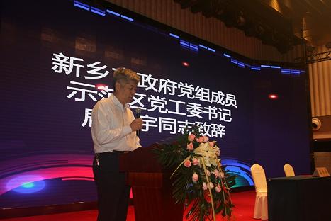 新鄉市政府黨組成員、平原示范區黨工委書記鹿建宇同志首先致辭,鹿書記熱烈祝賀峰會的召開,歡迎參會嘉賓及代表的蒞臨,并介紹了新鄉市平原示范區的概況。
