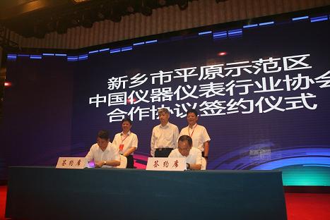 接下來舉行了協會與新鄉市平原示范區戰略合作協議簽字儀式。戰略合作協議由新鄉市平原示范區管委會主任路文忠和協會專職副理事長兼秘書長李躍光共同簽署,新鄉市平原示范新區黨工委書記鹿建宇,中國儀器儀表行業協會名譽理事長向曉波、汪力成見證簽約。