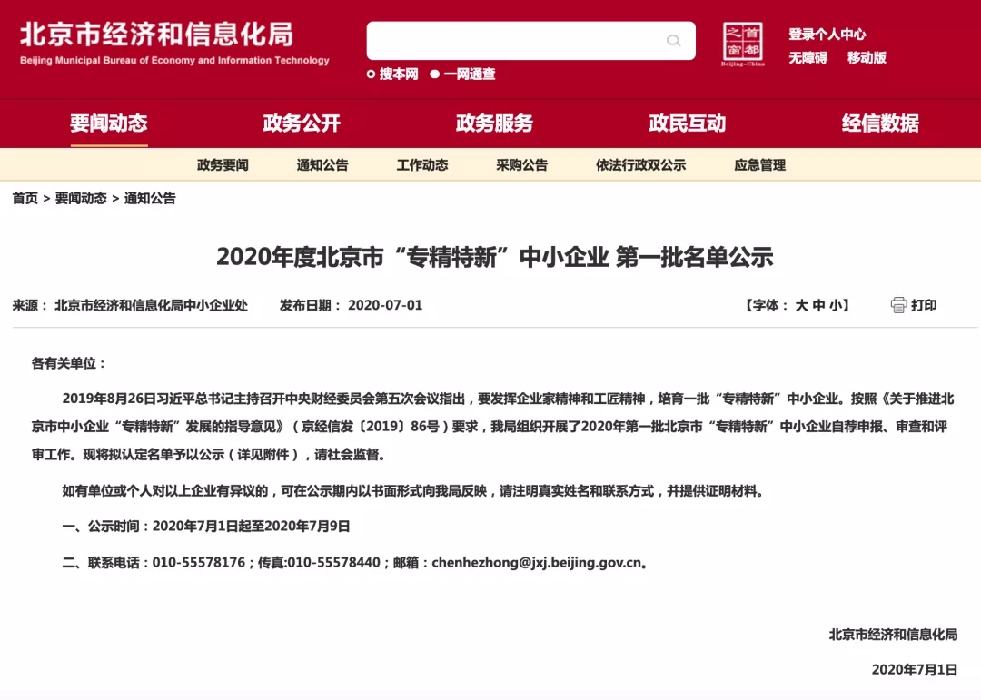 北京市開展“專精特新”企業(yè)培育工作,旨在促進(jìn)中小企業(yè)轉(zhuǎn)型升級(jí),提升中小企業(yè)綜合競(jìng)爭(zhēng)力,培育一批在細(xì)分行業(yè)內(nèi)技術(shù)實(shí)力強(qiáng)、產(chǎn)品質(zhì)量好、服務(wù)水平優(yōu)、市場(chǎng)份額高、品牌影響大、發(fā)展前景廣的中小企業(yè)。2020年第一批北京市“專精特新”中小企業(yè)評(píng)選綜合考察了企業(yè)的經(jīng)營(yíng)、技術(shù)和市場(chǎng)前景等條件。獲得“專精特新”稱號(hào)的中小企業(yè),意味著其是市場(chǎng)中的佼佼者,是行業(yè)中創(chuàng)新能力強(qiáng)、掌握關(guān)鍵核心技術(shù)的領(lǐng)頭羊企業(yè)。