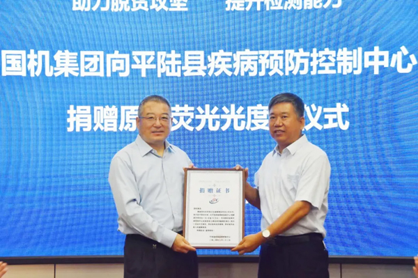 7月22日,國機集團黨委書記、董事長張曉侖,黨委副書記、董事宋欣,海光公司黨總支書記、總經理劉海濤,副總經理孟范勝一行來到平陸縣疾病預防控制中心,參加國機集團向平陸縣疾控捐贈原子熒光光度計儀式。
