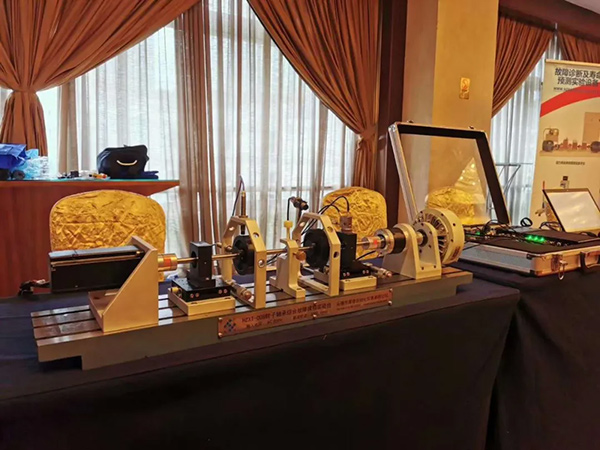 此次展出的是HZXT-008小型轉(zhuǎn)子滾動軸承綜合故障模擬實驗臺,及相關(guān)配套傳感器和采集分析系統(tǒng),該實驗系統(tǒng)可以對滾動軸承的結(jié)構(gòu)進行了解和觀測,也可靈活配置振動、轉(zhuǎn)速、噪聲、位移等等機械參量測量的傳感器,也可以模擬旋轉(zhuǎn)機械升降速瞬態(tài)過程及穩(wěn)態(tài)運行工況的振動狀態(tài),以及多種常見的旋轉(zhuǎn)機械故障并進行故障特征分析。