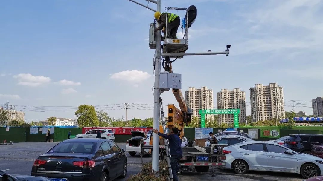 除了地面監控,調度平臺還接入了一個高空“鷹眼”——在位于南京市建鄴區江山大街的一個通信高塔上,架設在50米高空的360度高清攝像頭將周邊所有的工地納入視線。