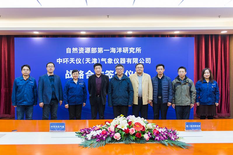 2020年1月6日,中環天儀(天津)氣象儀器有限公司與自然資源部第一海洋研究所戰略合作簽約儀式在天津舉行。公司董事長鄭曉林、總經理潘軍和班子成員與海洋一所所長李鐵剛、海氣中心主任方越、成果轉化處副處長胡光海共同見證并參與了簽約儀式。