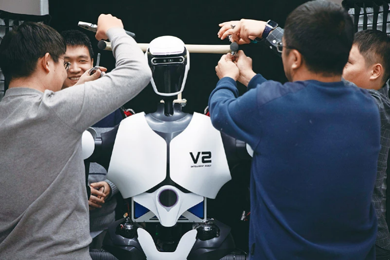 科技創(chuàng)新能夠催生新產(chǎn)業(yè)、新模式、新動能,是發(fā)展新質(zhì)生產(chǎn)力的核心要素。中國科學(xué)院自動化研究所人形機器人攻關(guān)團隊自主突破多項核心技術(shù),研制了人形機器人設(shè)計組裝“大工廠”,可以快速設(shè)計構(gòu)建人形機器人硬件和軟件系統(tǒng)。圖為2024年1月31日,科研人員在多模態(tài)人工智能系統(tǒng)全國重點實驗室調(diào)試機器人。 新華社記者 金立旺/攝