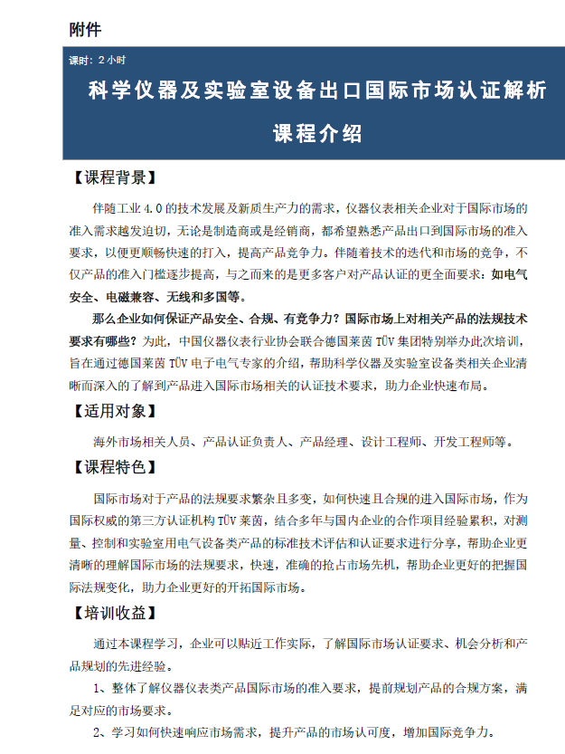 附件:科學儀器及實驗室設備出口國際市場認證解析課程介紹