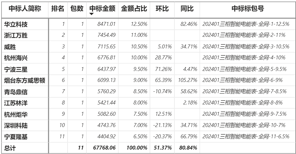 總金額6.78億元,11家企業實現中標,華立中標最大包8471.01萬元;