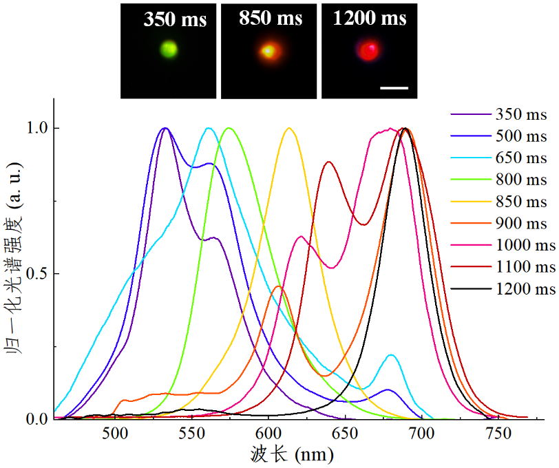 2 在同一塊玻璃內部不同超快激光靜態輻照參數下直寫的CsPbxCd1-xBr3 納米晶對應的發光光譜,