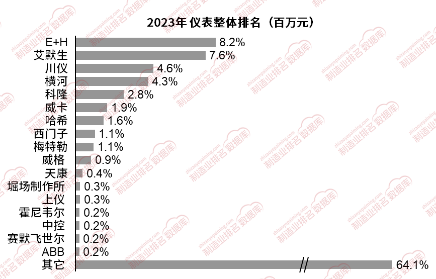 我國儀表行業(yè)目前市場集中度較低,全國儀表類整體的企業(yè)數(shù)量在2000~2500家,全國整體市場規(guī)模達(dá)到480億元,CR10市占率接近35%,其他廠商中主要為中小型地方性儀表的生產(chǎn)企業(yè)。未來隨著E+H、艾默生、等龍頭企業(yè)逐漸掌握關(guān)鍵技術(shù),其市場地位會(huì)進(jìn)一步穩(wěn)固,其次是川儀、橫河、科隆等,川儀產(chǎn)品較全,橫河主要為壓力變送器和流量計(jì),科隆主要為流量計(jì)。