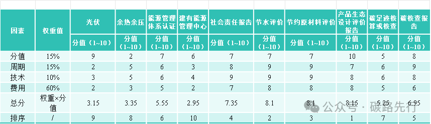 根據(jù)以上的拉分項,我們將從這些項目在申報綠色工廠時所占的分值,實施的周期,實施的難易程度,實施的費用進行權(quán)重分析打分,來對申報綠色工廠時必要的補足材料進行一個綜合性的排序。