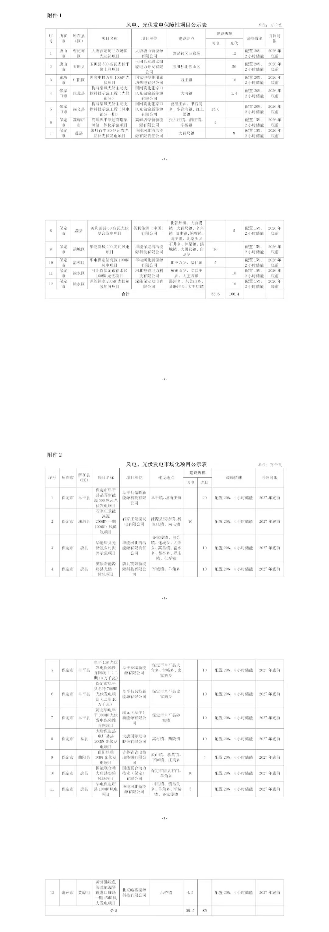 第二批:24個、2.5GW納入第二批的項目共25個,總規(guī)模259.5萬千瓦,其中保障性項目共13個、145萬千瓦,市場化項目共12個、114.5萬千瓦。根據(jù)調(diào)峰措施方面,保障性規(guī)模的配儲比例在15-20%/2小時,而市場化項目配儲比例大多為20%/4小時。第二批次獲得容量的項目業(yè)主中,唐山海泰新能源獲得規(guī)模最大,為500MW風電項目,另外華能(280MW,含100MW風電)、華電(250MW,含150MW風電)、大唐(220MW,含120MW風電)。國家電網(wǎng)(含136MW風電)和國家電投(全部為光伏)各獲得150MW項目。