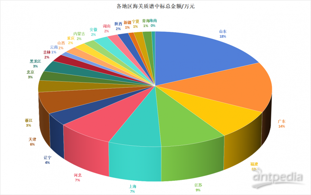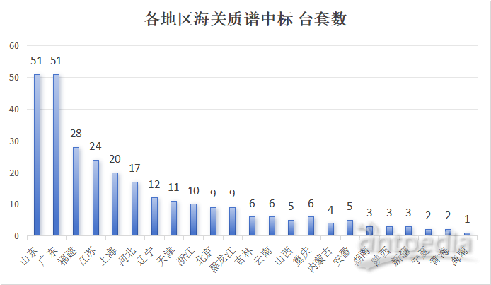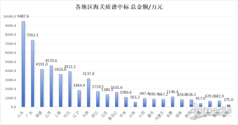 根據(jù)截至12月30日的公開中標(biāo)信息,不完全統(tǒng)計(jì)顯示,全國(guó)共有23個(gè)省、直轄市、自治區(qū)的72個(gè)海關(guān)相關(guān)單位參與了質(zhì)譜儀的采購(gòu),共采購(gòu)了288臺(tái)套質(zhì)譜儀器,中標(biāo)總金額達(dá)到5.2億元人民幣。