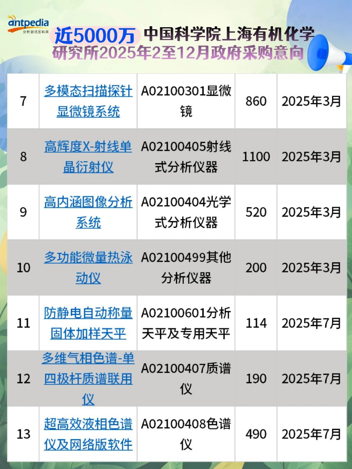 中國科學院上海有機化學研究所2025年2至12月政府采購意向發布,預算金額4895萬,采購項目13個。