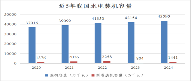 水電作為常規(guī)電力中唯一的可再生能源,2024年總體呈現(xiàn)出穩(wěn)定增長的發(fā)展趨勢(shì),并且在全球范圍內(nèi)保持領(lǐng)先地位。截至當(dāng)年底,我國水電總裝機(jī)容量達(dá)到4.36億千瓦,占我國電力總裝機(jī)的13.02%,較2023年新增裝機(jī)容量1378萬千瓦,同比增長3.2%,其中,常規(guī)水電裝機(jī)規(guī)模3.77億千瓦、同比增加625萬千瓦;抽水蓄能裝機(jī)規(guī)模5869萬千瓦、同比增加753萬千瓦。全年水電發(fā)電量14239億千瓦時(shí),占發(fā)電總量的13.53%,僅次于火電,排在第2位;規(guī)模以上水電年平均利用小時(shí)數(shù)為3349小時(shí)。在雙碳目標(biāo)和新能源快速發(fā)展的大背景下,水電以其穩(wěn)定、清潔的特點(diǎn),成為我國清潔能源供應(yīng)的可靠保證。
