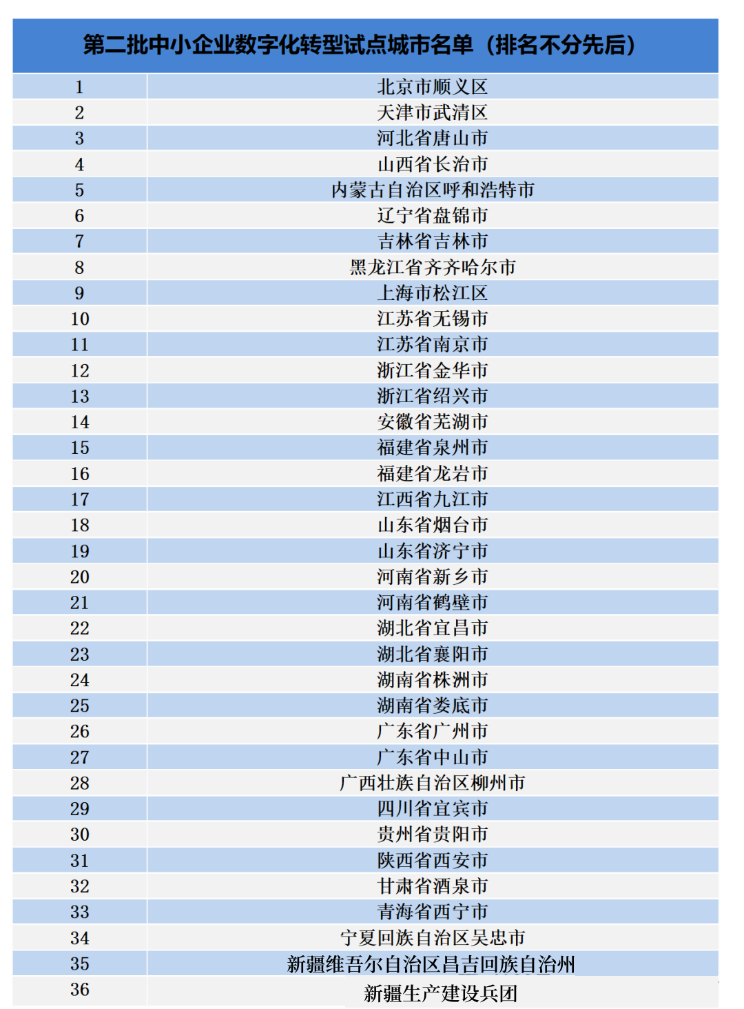 附中小企業(yè)數(shù)字化轉型城市試點前兩批名單如下: