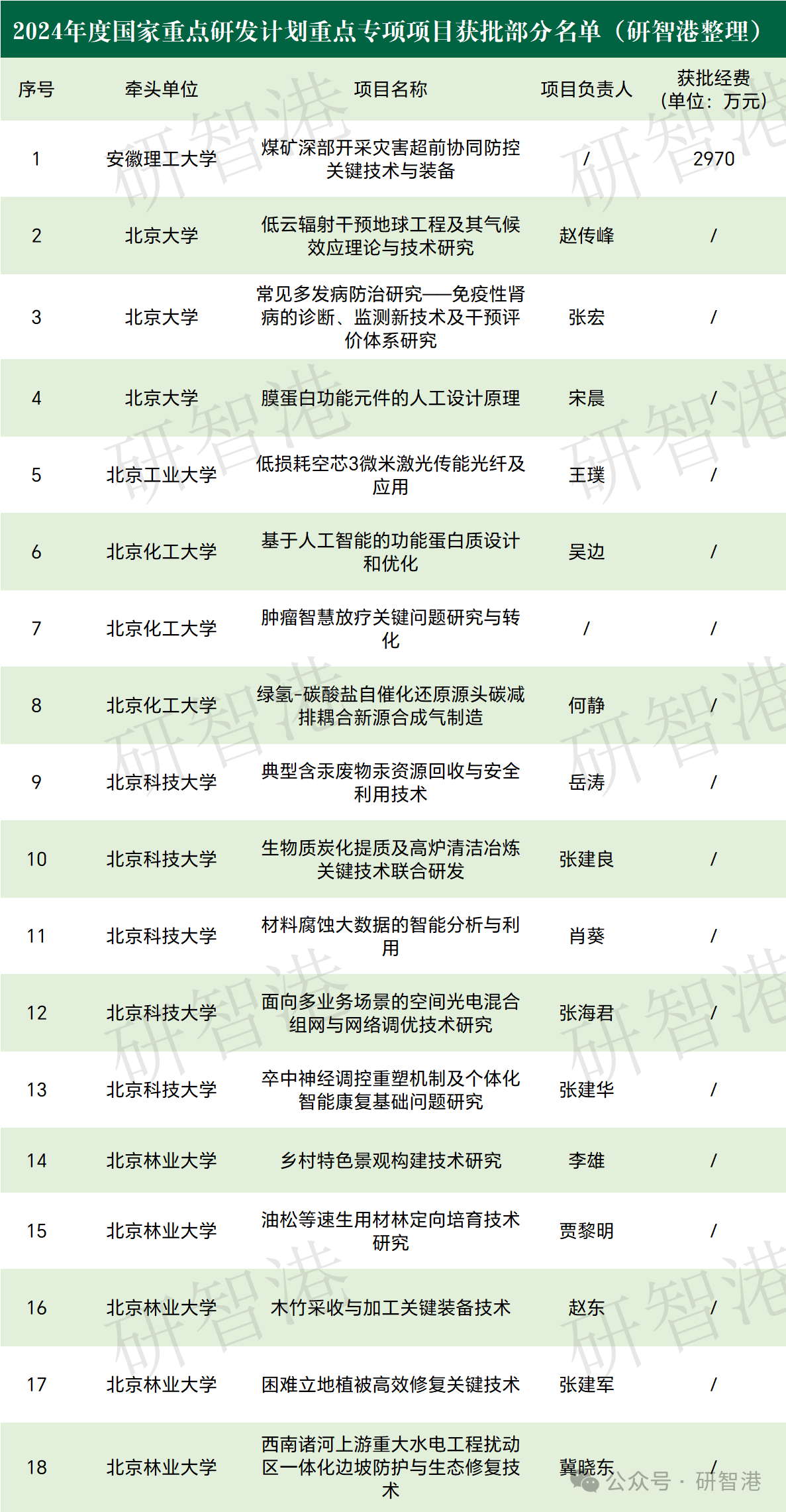 2024年度國家重點研發計劃高校獲批名單