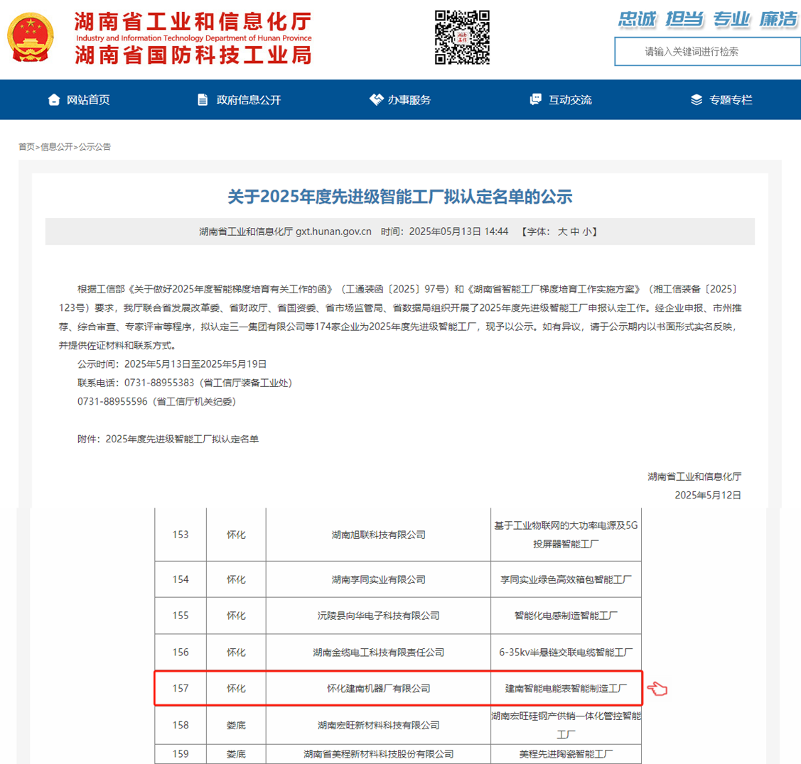 5月13日,懷化建南機器廠有限公司獲評“湖南省 2025 年度先進級智能工廠”稱號,這是公司在獲得懷化市基礎級智能工廠榮譽稱號后,再一次登上智能工廠更高層級的榮譽榜。是全體建南人共同努力的成果。