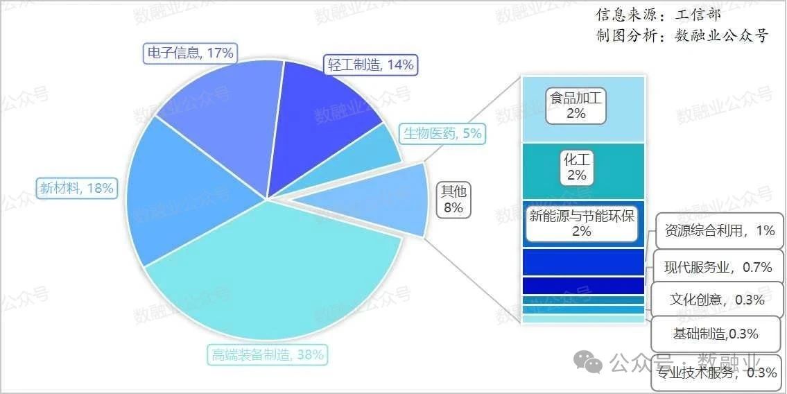 55個新材料(如有機高分子、碳纖維等)和50個電子信息類(包含智能控制、通信設備、電子元器件制造等)分別占比18%17%,體現對先進制造、科創領域的布局。