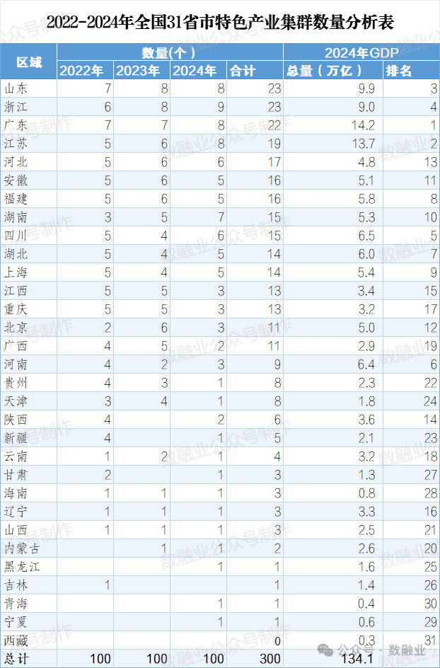 山東、浙江、廣東、江蘇等地,憑借完善的產業鏈配套、活躍的中小企業創新生態,在高端裝備制造、電子信息、新材料等集群布局上優勢顯著。如浙江聚焦高端裝備、電子信息,2024 年集群數量較 2022 年增長 3 個,產業升級與創新驅動效應明顯。
