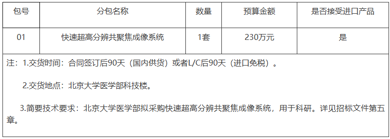 項目名稱:北京大學醫(yī)學部快速超高分辨共聚焦成像系統采購項目