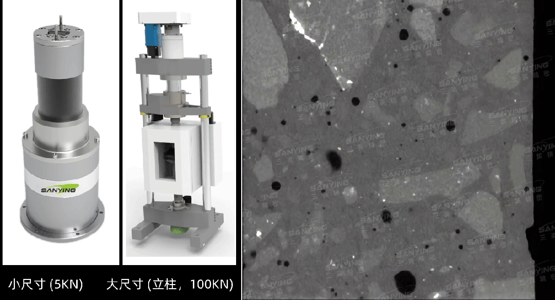 右圖:壓力加載下混凝土內(nèi)部結(jié)構(gòu)的實(shí)時(shí)變化(動(dòng)態(tài)圖)
