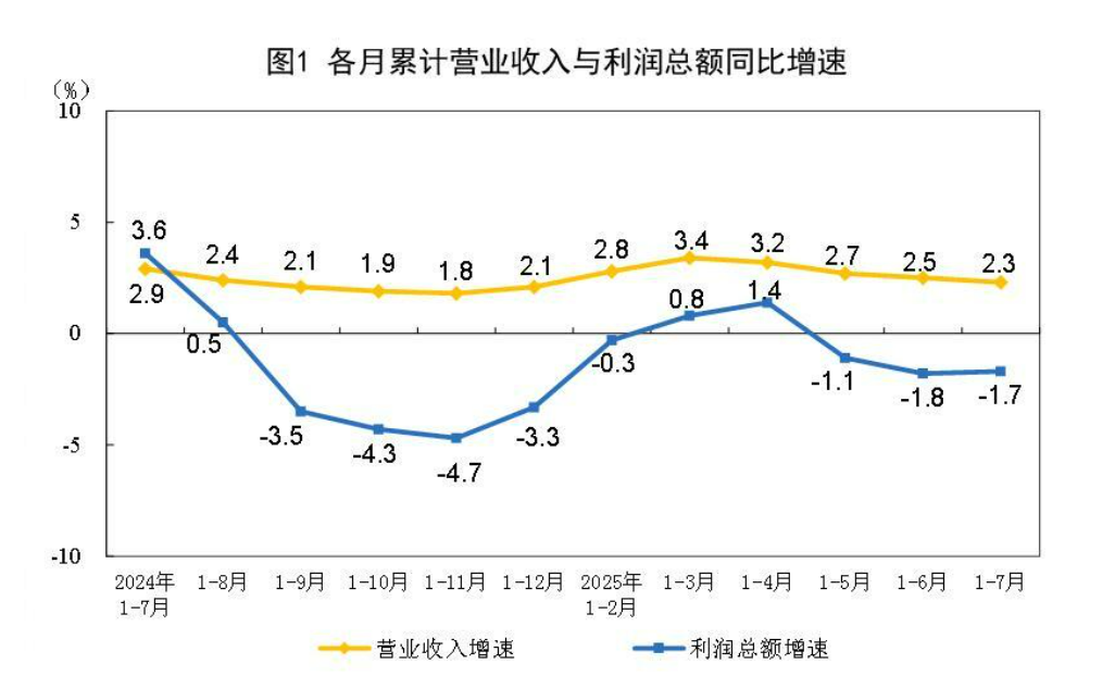 1—7月份,全國規(guī)模以上工業(yè)企業(yè)實(shí)現(xiàn)利潤總額40203.5億元,同比下降1.7%(按可比口徑計(jì)算,詳見附注二)。