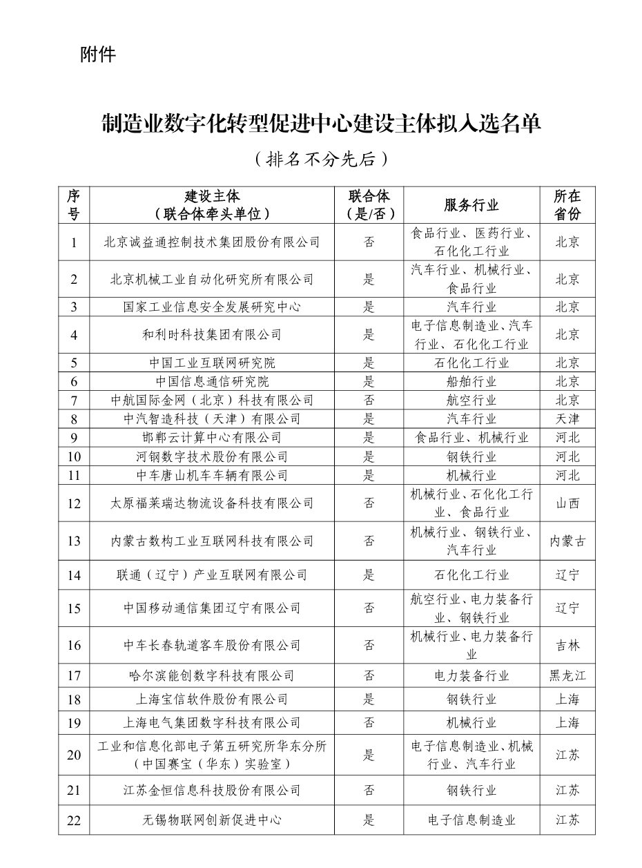 附件:制造業數字化轉型促進中心建設主體擬入選名單