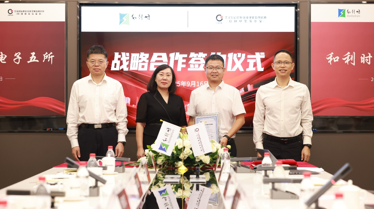 9月16日,和利時與工業和信息化部電子第五研究所(以下簡稱“電子五所”)在和利時集團北京基地舉行了戰略合作協議簽約儀式。和利時集團聯席總裁方壘、電子五所所長楊建軍出席并見證簽約。