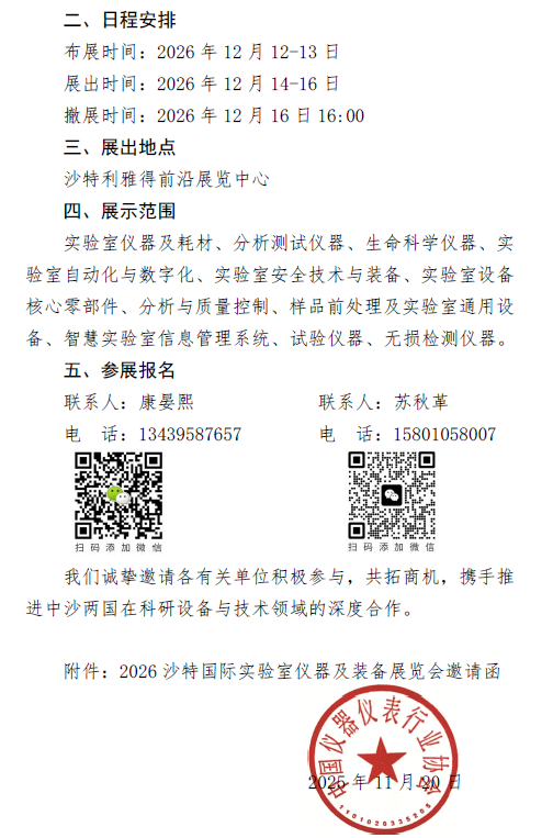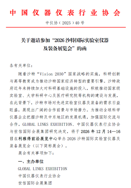 關(guān)于邀請參加“2026 沙特國際實(shí)驗(yàn)室儀器及裝備展