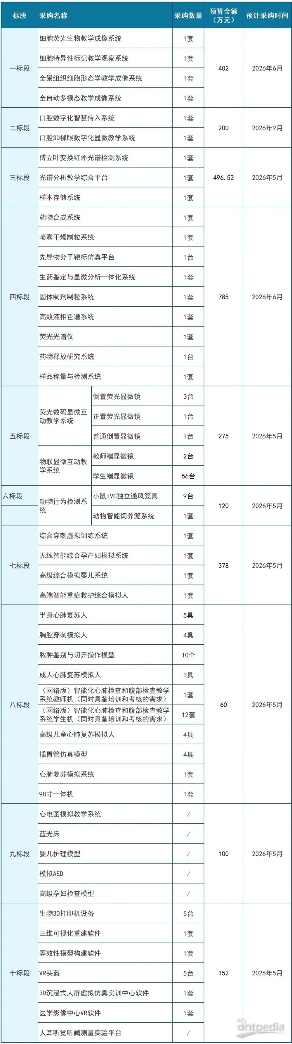 此次采購涵蓋多學科教學科研所需設備,核心目的是優化教學科研條件,解決現有設備老化、性能不足等短板,進一步提升人才培養質量和科研創新能力,助力學校學科高質量發展,為區域醫療衛生事業發展提供堅實的硬件支撐。