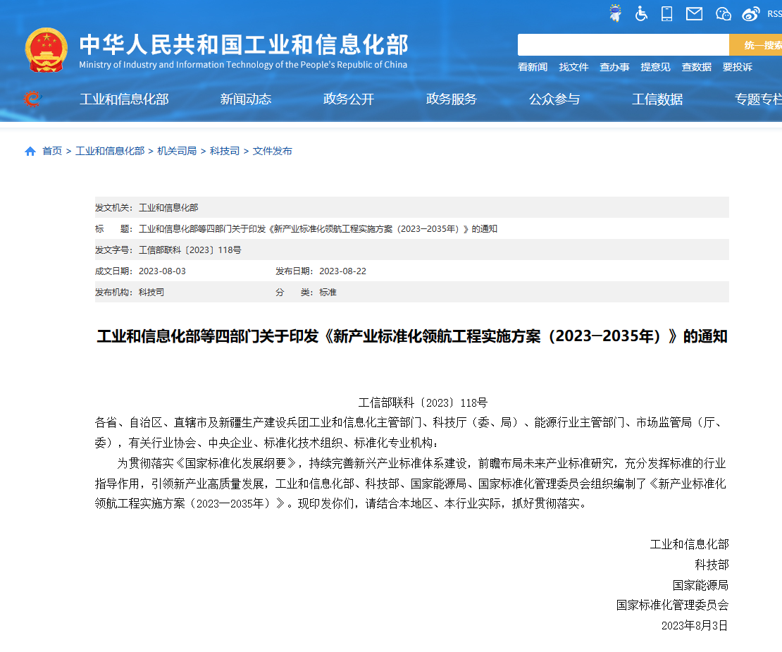 四部門印發(fā)《新產(chǎn)業(yè)標(biāo)準(zhǔn)化領(lǐng)航工程實施方案(2023—2035年)》