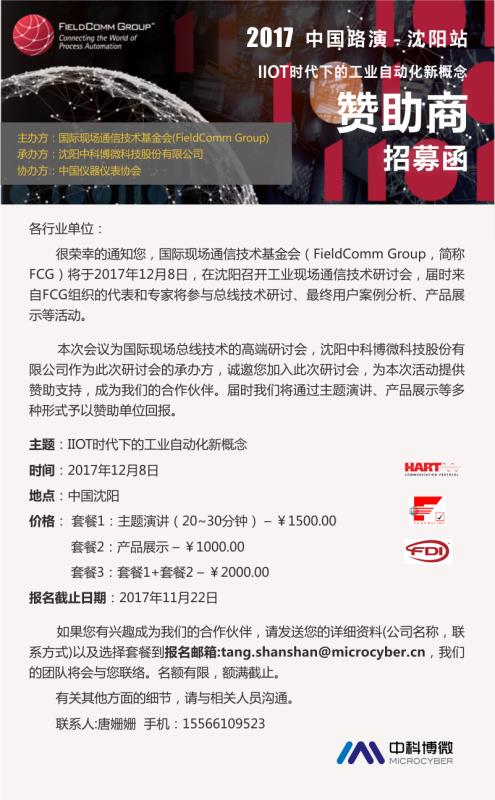 “IIOT時代下的工業自動化新概念”2017 FCG中國路演–沈陽站會議通知