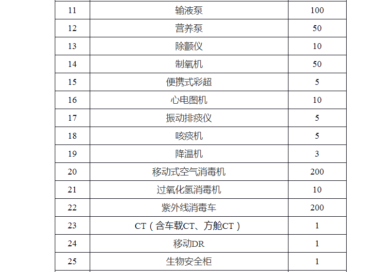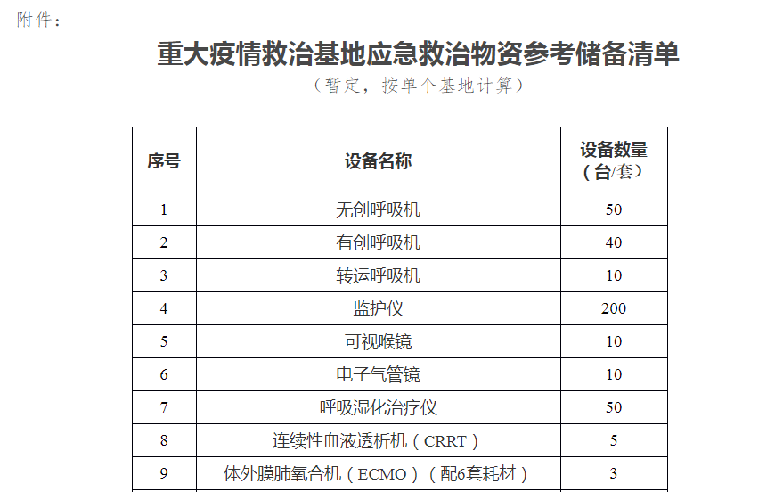 附件:重大疫情救治基地應急救治物資參考儲備清單