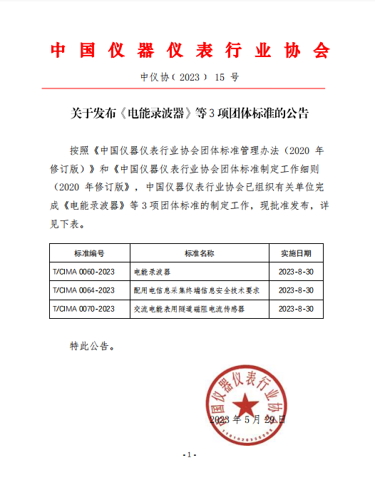 關于發布《電能錄波器》等3項團體標準的公告