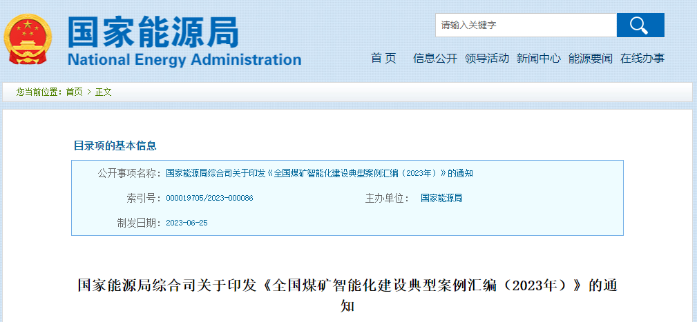 為全面貫徹黨的二十大精神,深入落實《關于加快煤礦智能化發展的指導意見》(發改能源〔2020〕283號),加快推動新一代信息技術與煤炭產業深度融合,我們梳理了智能化示范煤礦建設過程中的成功經驗和典型做法,形成了《全國煤礦智能化建設典型案例匯編(2023年)》。現印發你們,請各地煤炭行業主管部門、有關中央企業,按照全國煤礦智能化建設現場推進會工作部署,認真學習借鑒典型案例先進經驗,因地制宜積極推廣煤礦智能化建設的成功做法,廣泛宣傳智能化建設成效,形成示范效應,推動煤礦智能化建設邁向更高水平。煤礦智能化建設過程中如有重大突破和重要進展,請及時反饋國家能源局(煤炭司)。