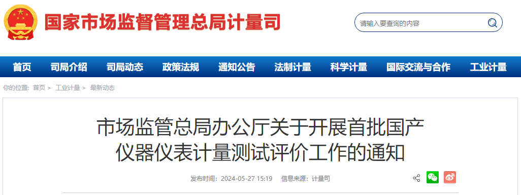 市場監管總局辦公廳關于開展首批國產儀器儀表計量測試評價工作的通知