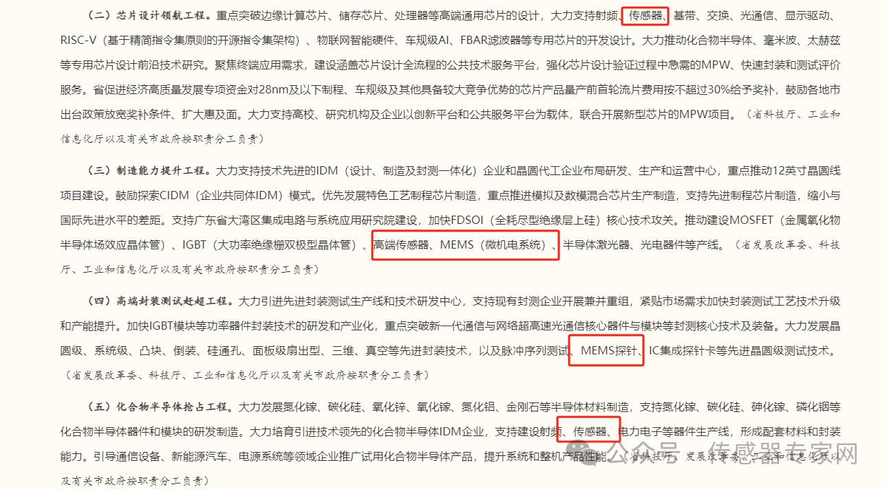 2024年1月,廣東省印發(fā)《廣東省培育半導體及集成電路戰(zhàn)略性新興產(chǎn)業(yè)集群行動計劃(2023-2025年)》,提出“到2025年,半導體及集成電路產(chǎn)業(yè)年主營業(yè)務收入突破4000億元,年均增長超過22%。”其中,MEMS、傳感器是《行動計劃》中的關鍵項目。