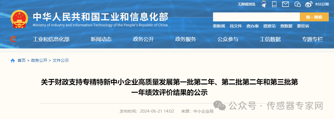6月21日,工信部公示財政支持專精特新中小企業(yè)高質(zhì)量發(fā)展第一批第二年、第二批第二年和第三批第一年績效評價結(jié)果,共計1188家。公示時間為2024年6月21日至6月27日。