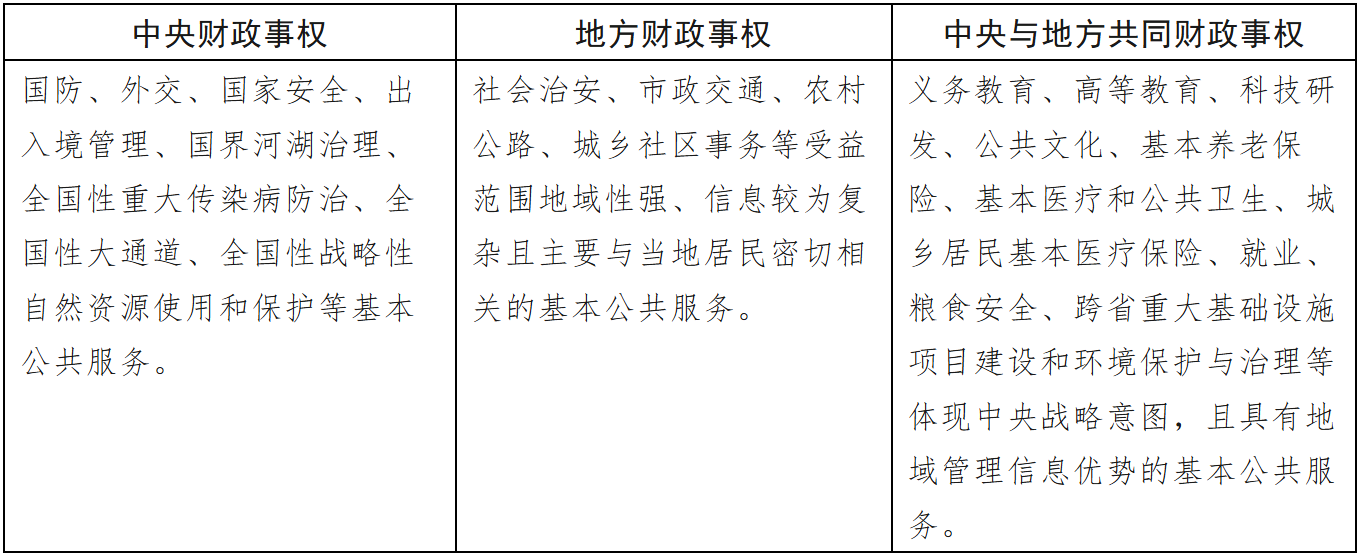 表1:中央與地方財(cái)政事權(quán)和支出責(zé)任劃分(2016)