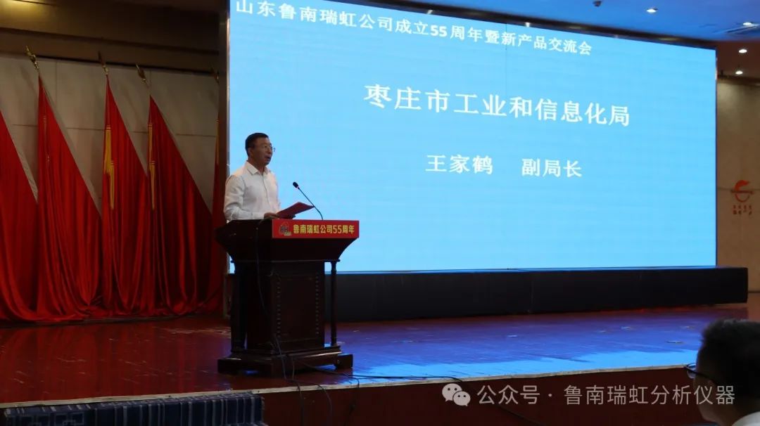 棗莊市工信局副局長王家鶴登臺(tái)致辭。魯南瑞虹儀器公司前身為技術(shù)密集性國營企業(yè),是棗莊市具有代表性的高新技術(shù)企業(yè),為國家色譜事業(yè)的發(fā)展較大貢獻(xiàn)。瑞虹公司要充分發(fā)揮科研優(yōu)勢,秉持以科研創(chuàng)新、產(chǎn)品創(chuàng)新的發(fā)展戰(zhàn)略方針,加大科研力度,打造魯南地區(qū)特色高新技術(shù)產(chǎn)業(yè),擴(kuò)規(guī)模、提質(zhì)量、增效益,成為我們山東分析儀器領(lǐng)軍企業(yè)。