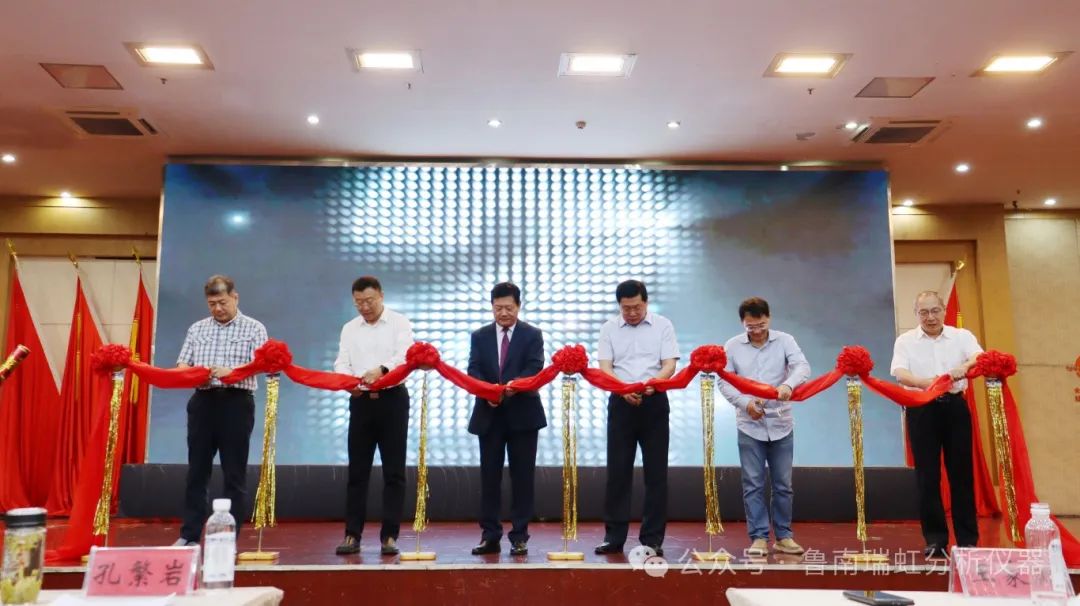 隨后活動(dòng)進(jìn)入新產(chǎn)品發(fā)布環(huán)節(jié),首先棗莊市工信局副局長王家鶴、中國儀器儀表行業(yè)協(xié)會(huì)分析儀器分會(huì)秘書長曾偉、中國科學(xué)院空天信息創(chuàng)新研究院研究員孫建海、山東化學(xué)化工學(xué)會(huì)秘書長劉寶勝、公司董事長孔繁巖、公司副總經(jīng)理付桂華共同為新儀器進(jìn)行剪彩。