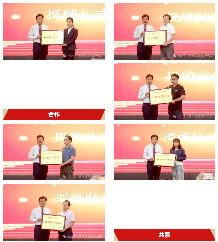 隨后活動(dòng)進(jìn)入戰(zhàn)略合作單位授牌儀式。我公司與山東尚正新材料科技股份有限公司、廣西南寧恒之創(chuàng)儀器設(shè)備有限公司、重慶帕萊森科技有限公司、重慶匯美科學(xué)儀器有限公司、江蘇麗智安科教育科技有限公司、北京銳天駿宇科技有限公司建立戰(zhàn)略合作關(guān)系,共同為國產(chǎn)色譜儀器的發(fā)展添磚加瓦。